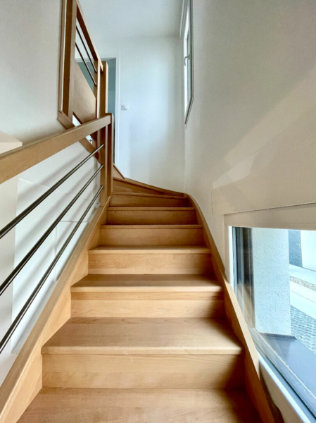 – à l’étage : le pallier dessert 2 grandes chambres de 15,5 m² et 12,10 m² avec placard ainsi qu’une salle de bain avec WC.