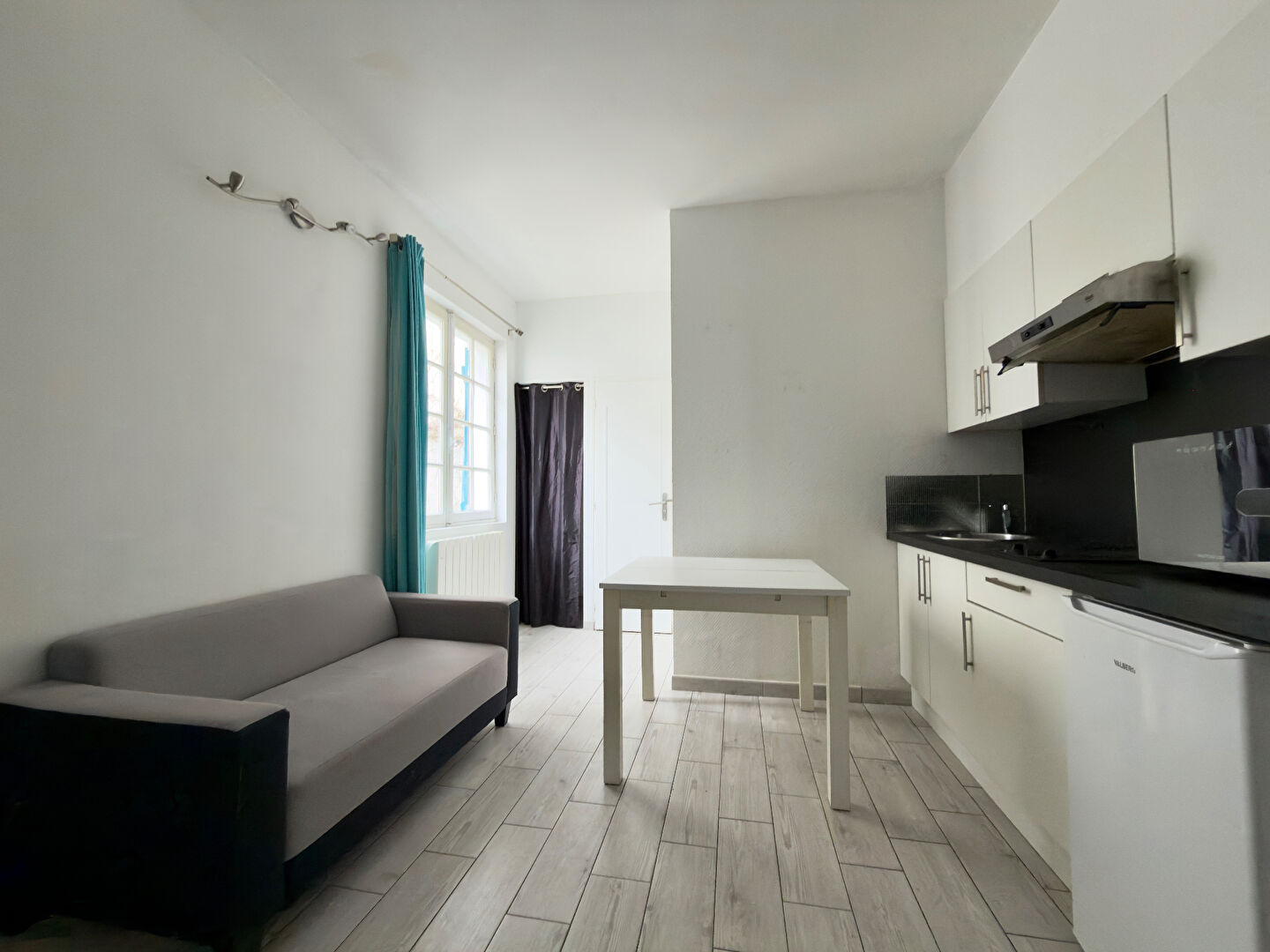 Il distribue une entrée, un séjour avec coin cuisine aménagée et équipée, une chambre, une salle d’eau, wc indépendant.