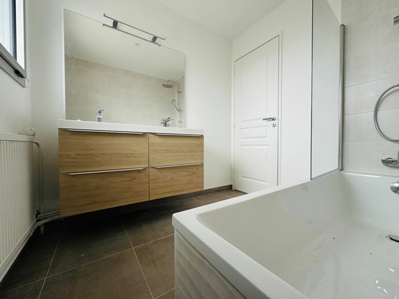 Il se compose d’une grande entrée avec placard, desservant une belle pièce de vie de 26m2, un couloir avec de nombreux placards, dessert une grande cuisine aménagée et équipée, une salle de bains, deux chambres (trois possible) et des toilettes séparés.