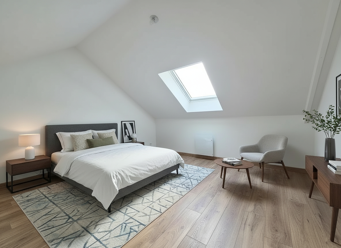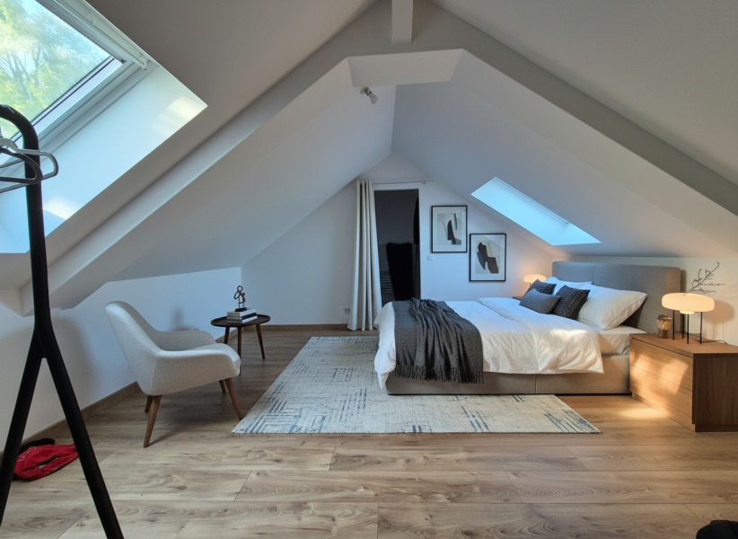 A l’étage, le duplex propose deux chambres supplémentaires, dont une avec sa salle d’eau privative, ainsi qu’un second WC indépendant.