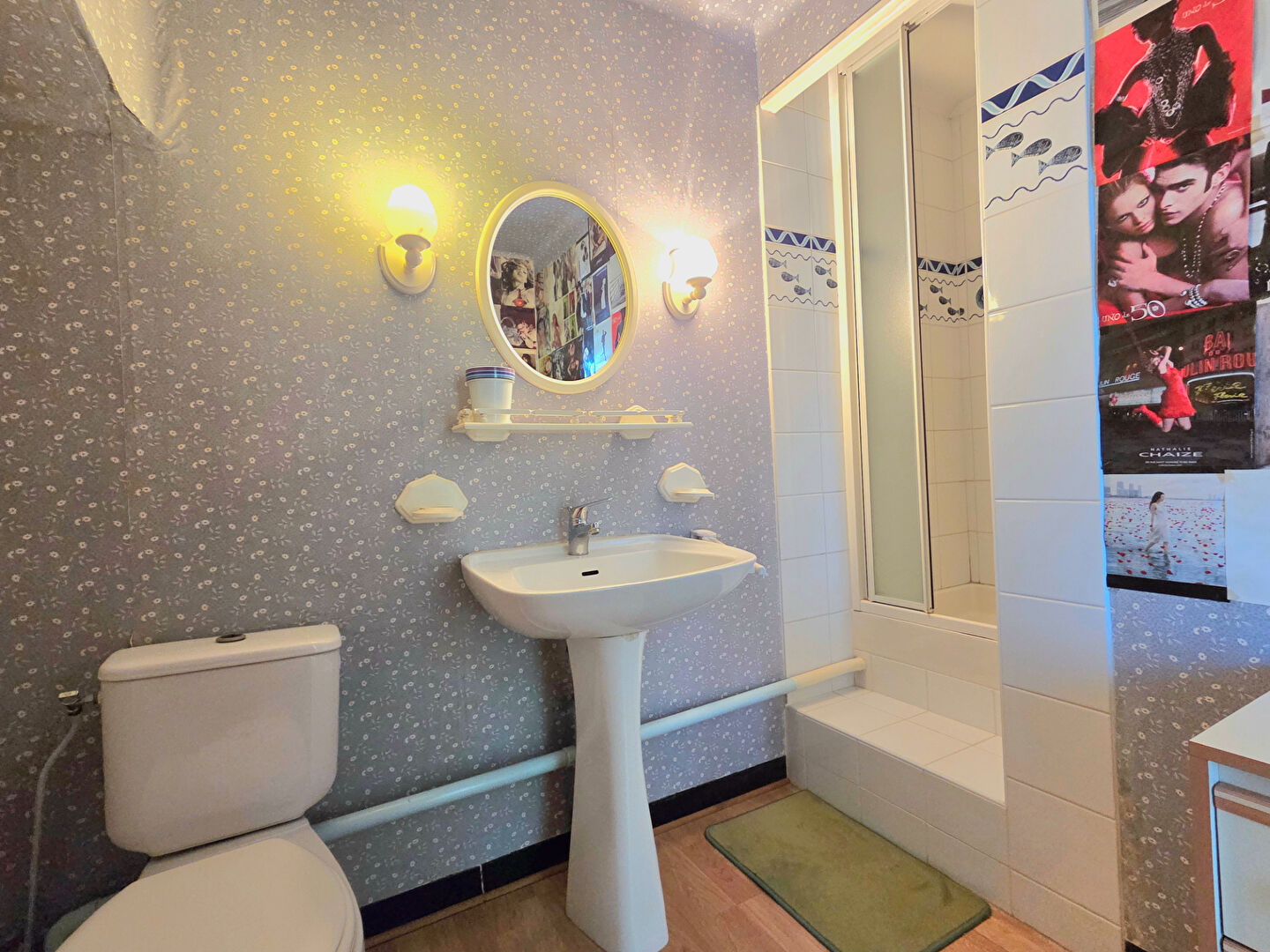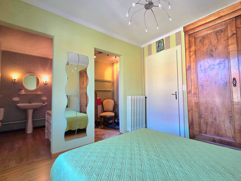 A l’étage, le palier mène à une troisième chambre avec espace bureau et salle d’eau privative (douche et WC), ainsi qu’à un balcon.