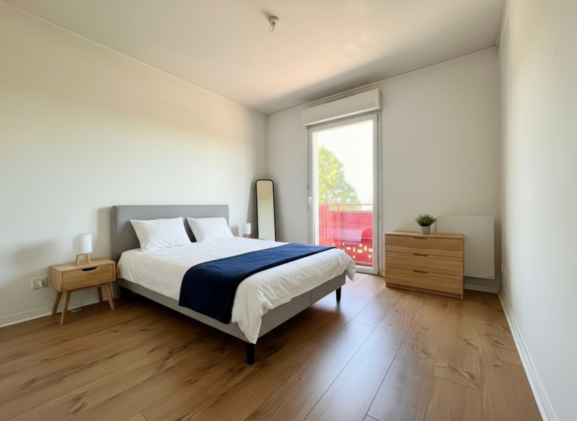 Boulevard Jules Verne, dans un immeuble de 2000, appartement de type 2 comprenant une entrée desservant une pièce de vie communiquant avec une cuisine à aménager. Devis disponible pour une cuisine aménagée disponible. Une chambre et une salle de bains. Un wc séparé et un placard dans l’entrée.