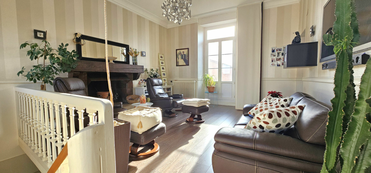 « Une maison de caractère en très bon état, offrant de très beaux volumes et une capacité d’accueil rare, idéale pour une grande famille souhaitant profiter d’une vie de centre-bourg avec toutes les commodités accessibles à pied. » (4.80 % honoraires TTC à la charge de l’acquéreur.)
