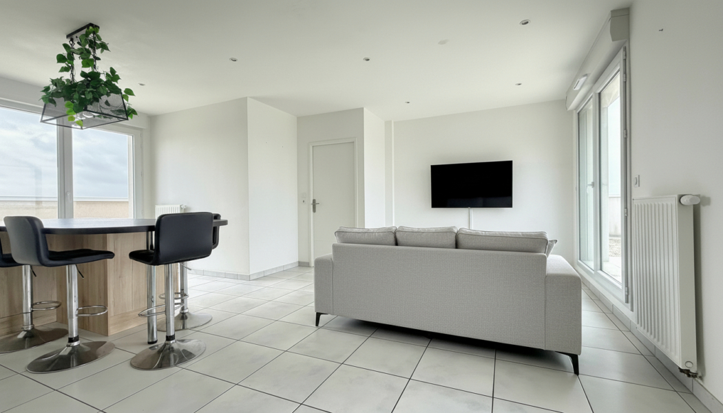 A Saint-Herblain Bourg, découvrez ce superbe appartement en dernier étage avec deux terrasses offrant une vue dégagée et imprenable.