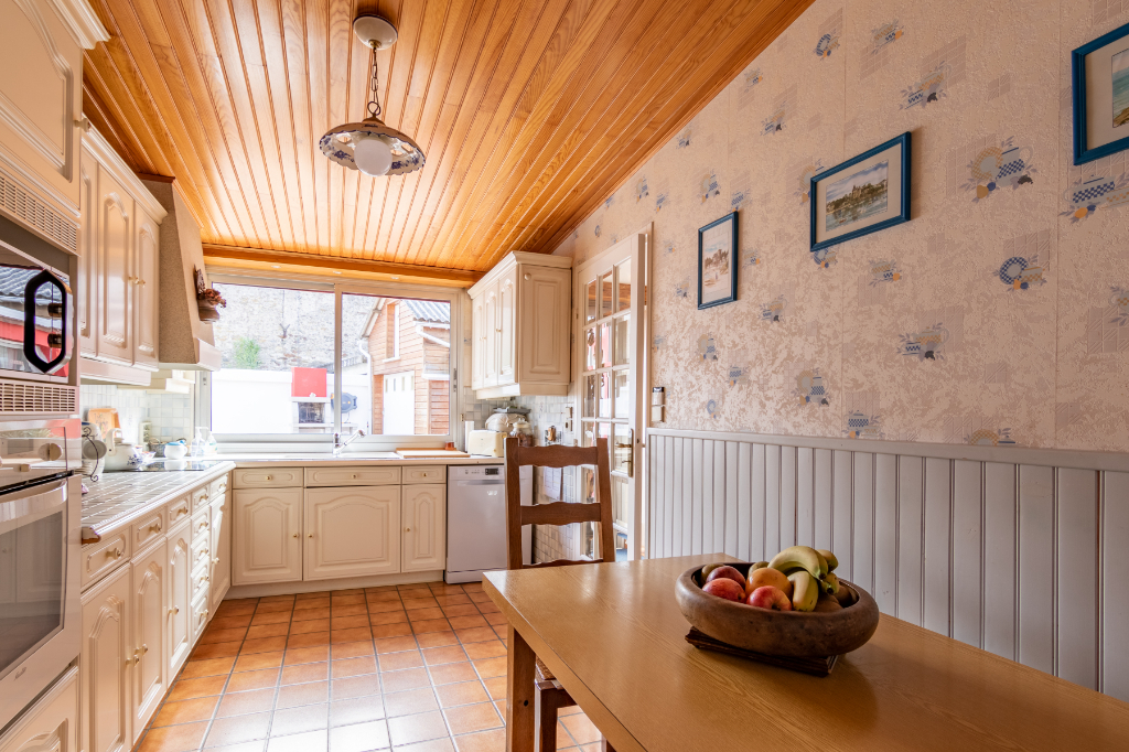 Elle se compose d’une belle pièce de vie avec cheminée, d’une cuisine aménagée/équipée pouvant être ouverte sur le salon, de quatre chambres et d’une belle salle d’eau avec possibilité de créer une deuxième salle de bains.