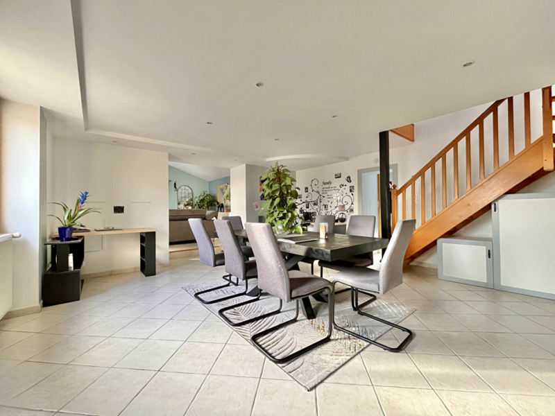 EXCLUSIVITE – Proche du bourg et de la carrière, belle maison avec vie de plain pieds comprenant une double pièce de vie avec salle à manger. Une grande cuisine séparée entièrement aménagée et équipée ainsi qu’un WC séparé. Une suite parentale de plain pieds avec salle d’eau privative.