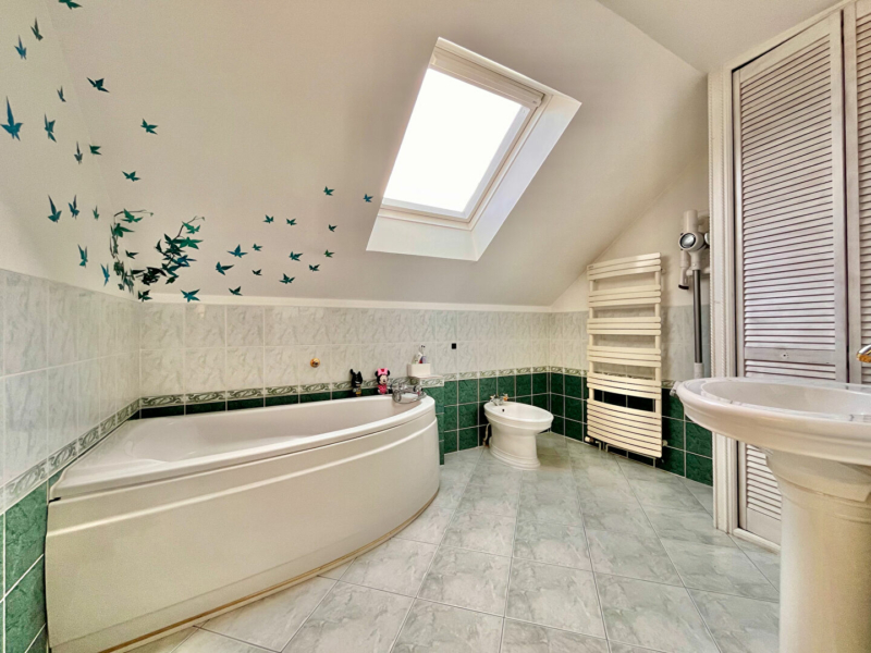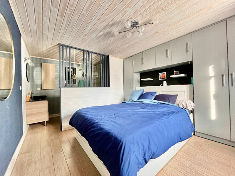 Nous retrouvons également un grand garage de 33 m² ainsi qu’une pièce attenante pouvant être transformée en chambre de 17 m².
