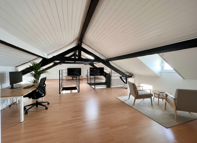 Le deuxième étage offre une mezzanine, idéale pour un coin lecture ou un bureau.