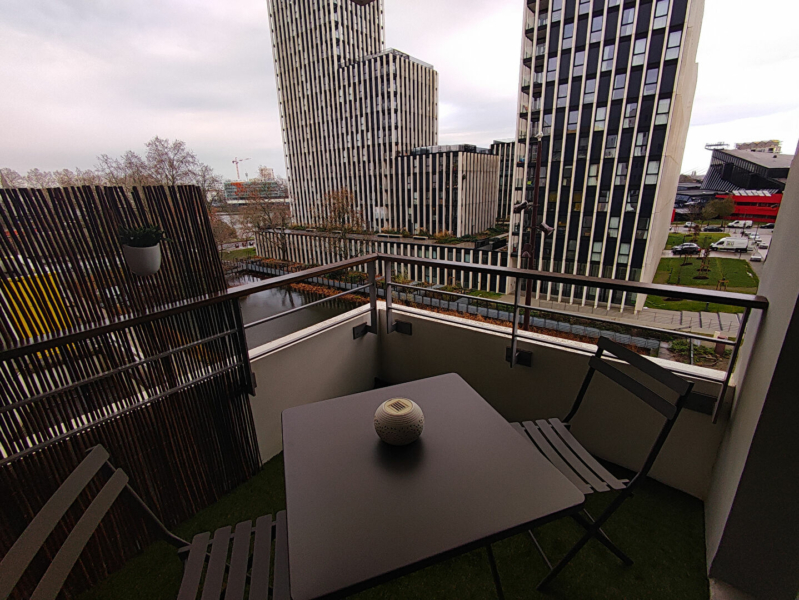 En complément, une cave et un balcon donnant sur de jolis bassins arborés apportent un vrai plus au quotidien.