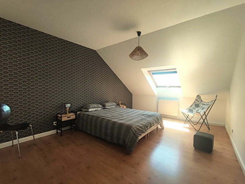 A l’étage, le pallier avec placard dessert deux chambres avec dressing ainsi qu’une salle de bain et des WC.