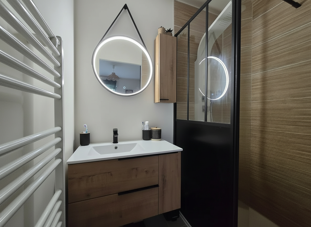 Vous trouverez également au rez-de-chaussée une chambre avec un accès sur le jardin et sa salle d’eau privative.