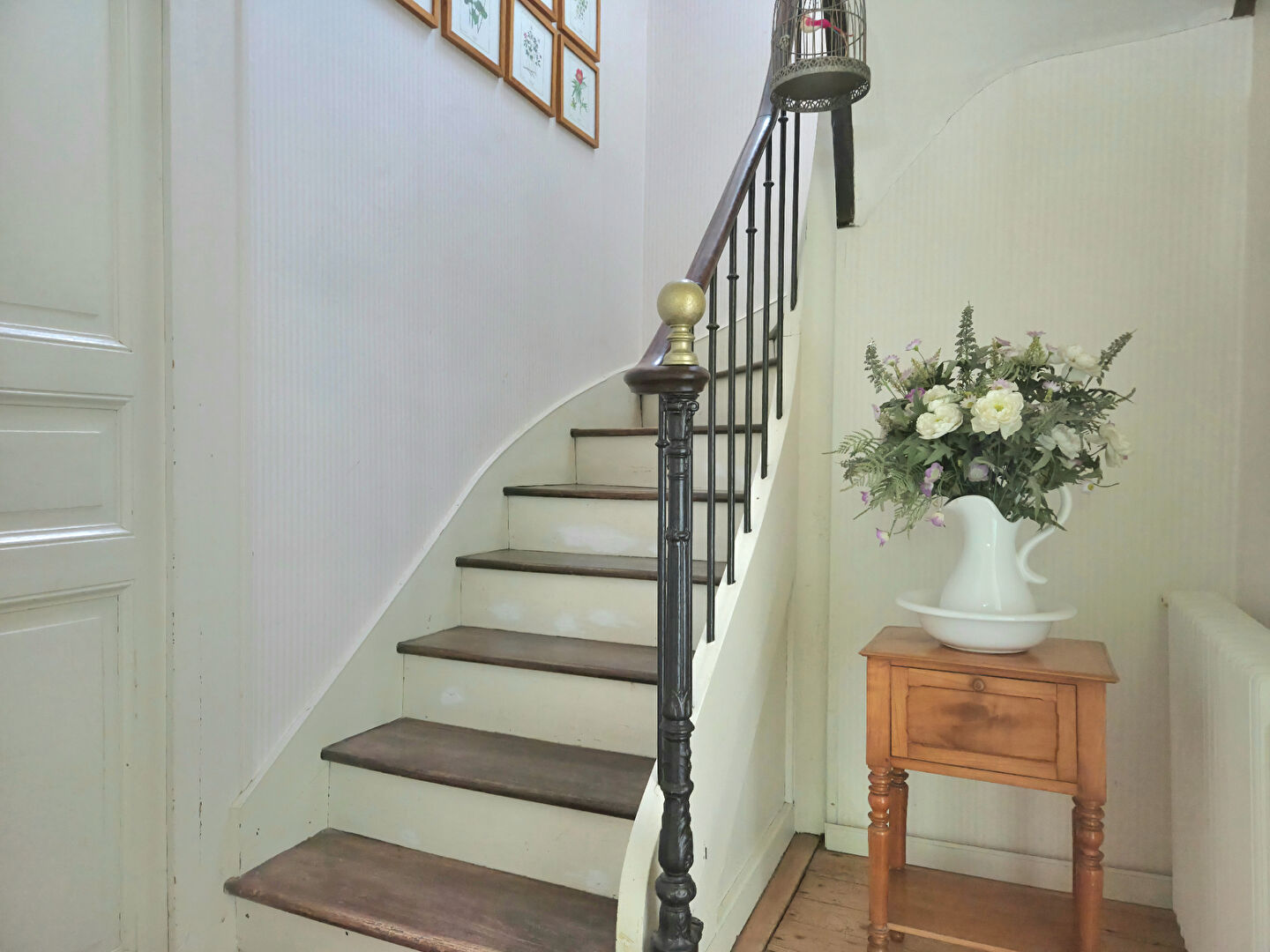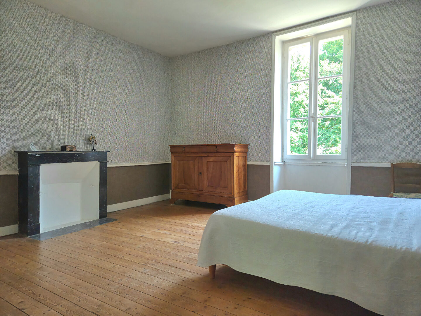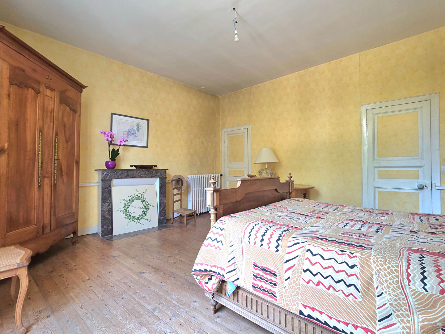Un bel escalier ancien vous conduit au premier étage, composé d’une première chambre, d’une seconde chambre avec pièce secrète, ainsi que de deux autres chambres dotées de cheminées d’époque (désormais condamnées) et de leurs salles d’eau privatives. Une salle d’eau supplémentaire, récemment rénovée, vient parfaire cet étage.