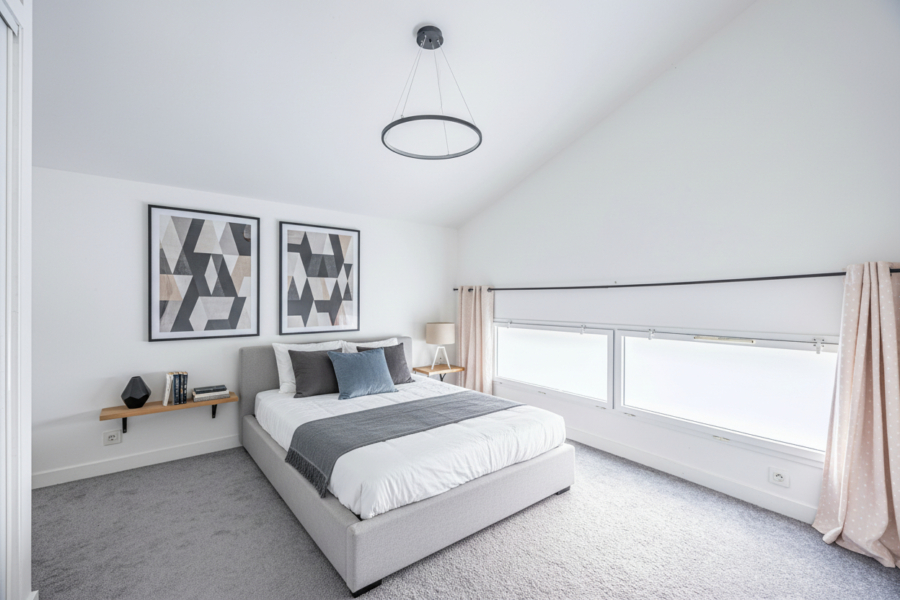 La cuisine ouverte, aménagée et entièrement équipée, prolonge harmonieusement l’espace de vie. Une arrière-cuisine complète ce niveau pour davantage de fonctionnalité. Une suite parentale avec salle d’eau privative et dressing vient parfaire le rez-de-chaussée.