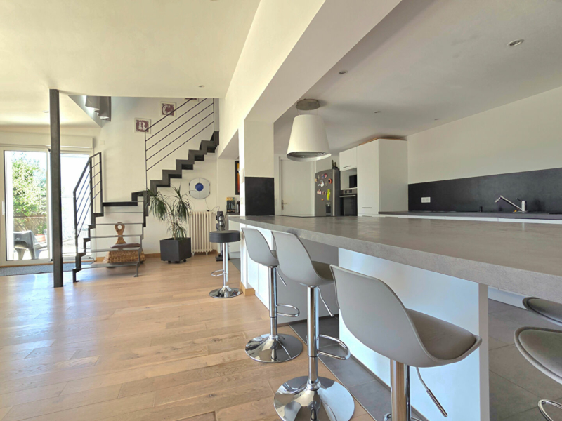 Une terrasse et un grand jardin exposés sud, complètent agréablement cette maison aux beaux volumes, et située à proximité immédiate des transports en commun, des écoles et des commerces. (3.75 % honoraires TTC à la charge de l’acquéreur.)