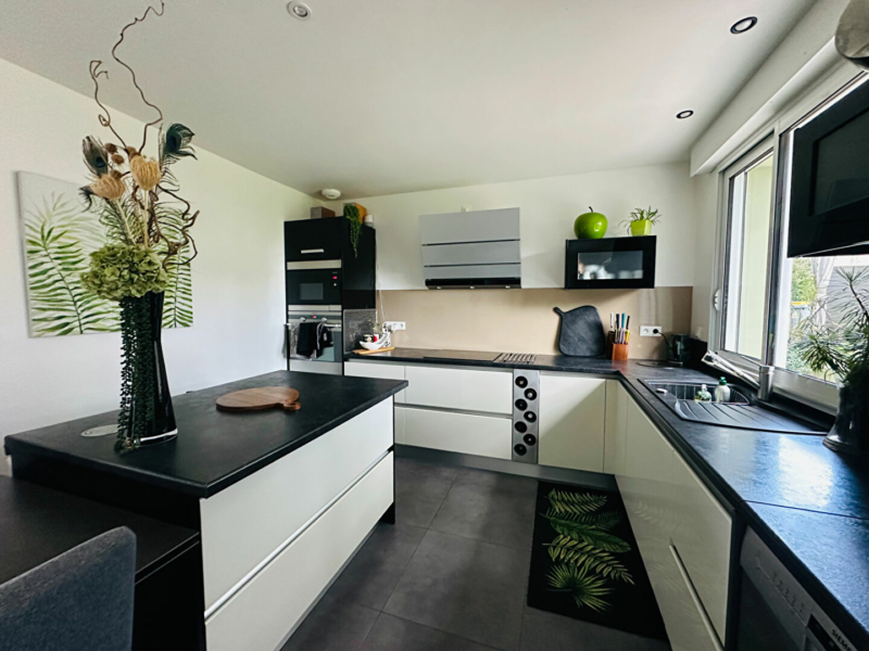 Elle se compose d’une grande entrée, d’une double pièce de vie très lumineuse, avec son insert et sa cuisine ouverte aménagée et équipée, donnant sur une terrasse avec sa pergola, donnant sur un joli jardin arboré, d’une chambre parentale avec sa salle d’eau, d’un toilette séparé, de rangements et d’un grand garage de 23m2 donnant sur une cuisine d’été et sur le jardin.