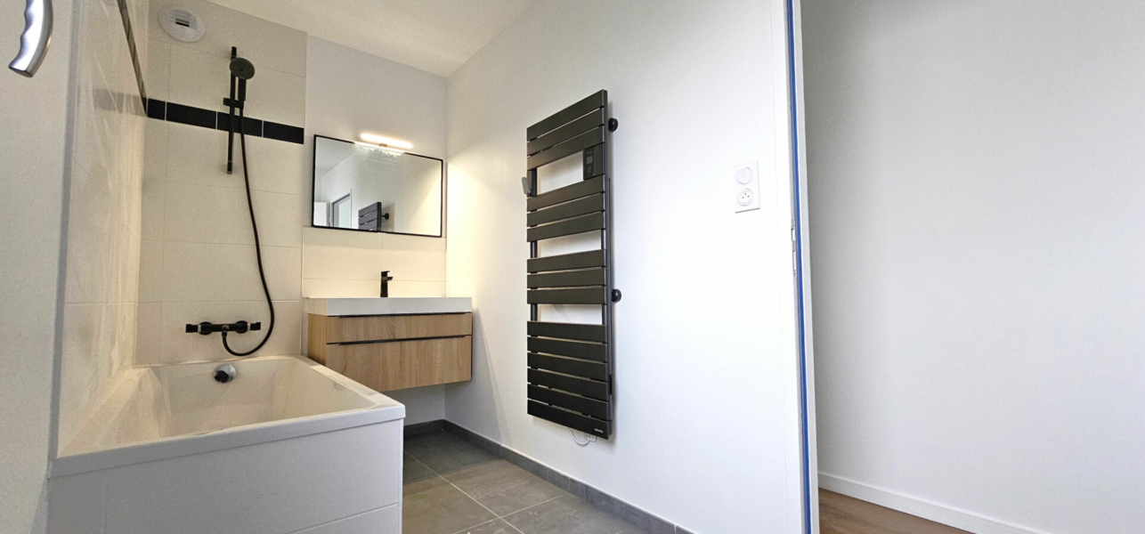 A l’étage, vous trouverez trois chambres avec placards et une belle salle de bains, fonctionnelle et élégante.