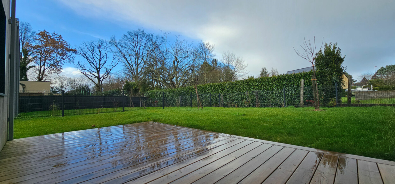Un beau jardin agrémenté d’une terrasse en bois, un garage avec porte électrique ainsi que deux places de stationnement viennent compléter ce bien aux prestations soignées.