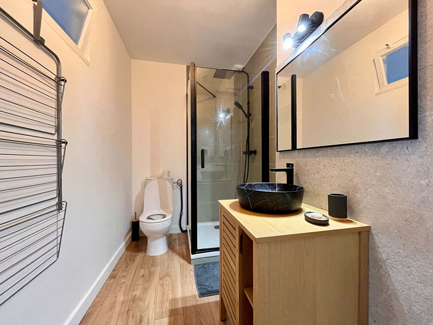 Au RDC d’une petite copropriété, appartement comprenant une pièce de vie avec cuisine ouverte donnant sur une cours privative, une salle d’eau et une chambre séparée.
