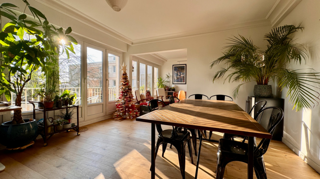 Il se compose de trois chambres, d’une salle de bains, d’une salle d’eau, d’une belle entrée et d’un vaste salon-séjour exposé plein sud, offrant une luminosité exceptionnelle, une vue dégagée, un grand balcon ainsi qu’une cheminée.