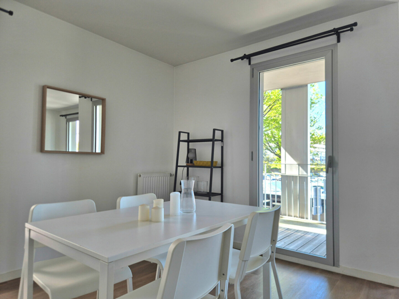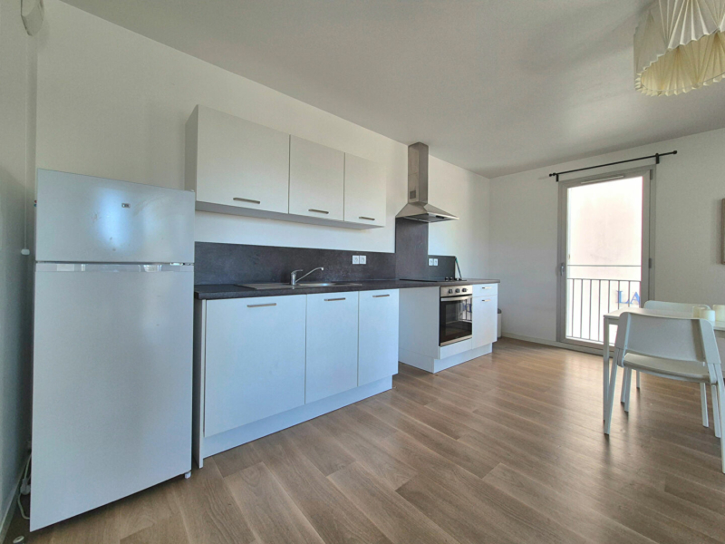 Dans un Immeuble récent, superbe Appartement de Type 2 meublé comprenant une pièce de vie lumineuse ouvert sur une cuisine aménagée et équipée et un balcon, une chambre avec un grand placard et d’une salle d’eau avec WC;