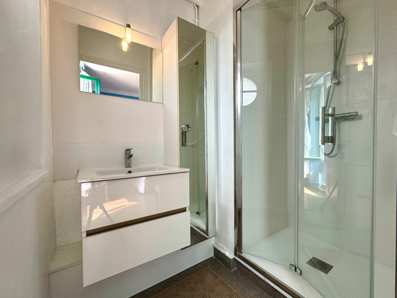 A l’étage : palier avec rangements, WC, une chambre avec salle d’eau, et une troisième chambre avec point d’eau et un bureau en enfilade, possibilité de créer une suite parentale.