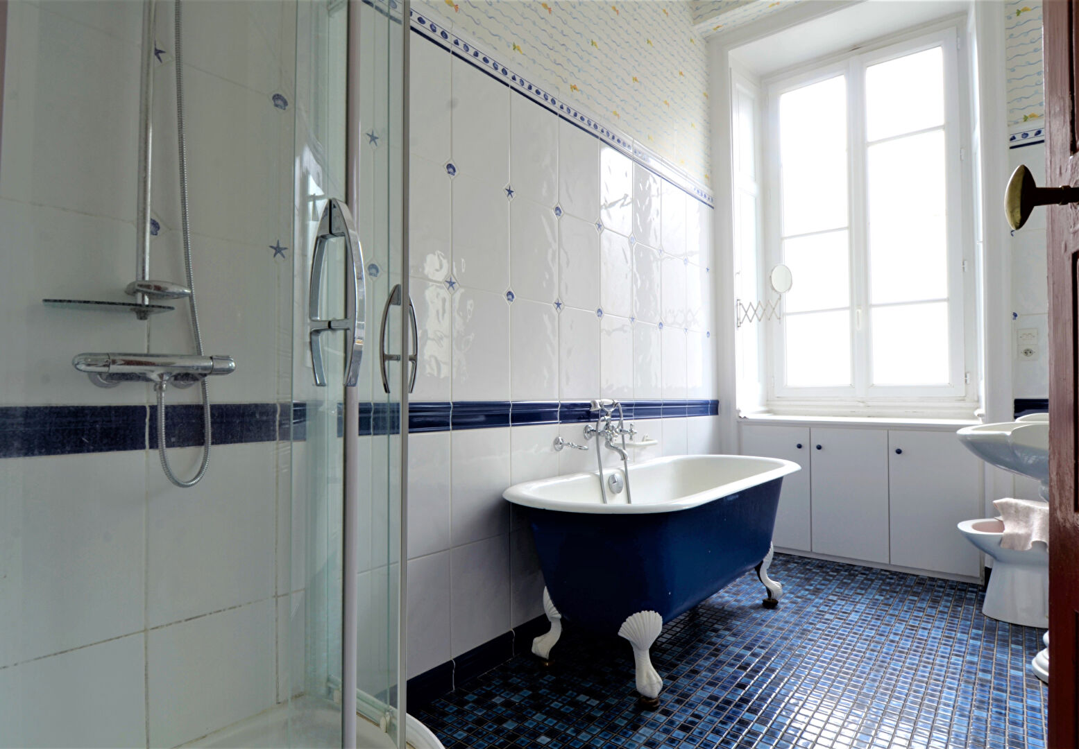 L’appartement traversant et haut sous plafond déploie une large entrée, 54 m² de salons de réception, une grande cuisine aménagée et équipée, 3 belles chambres au calme, un dressing, une salle de bains confortable et un WC.