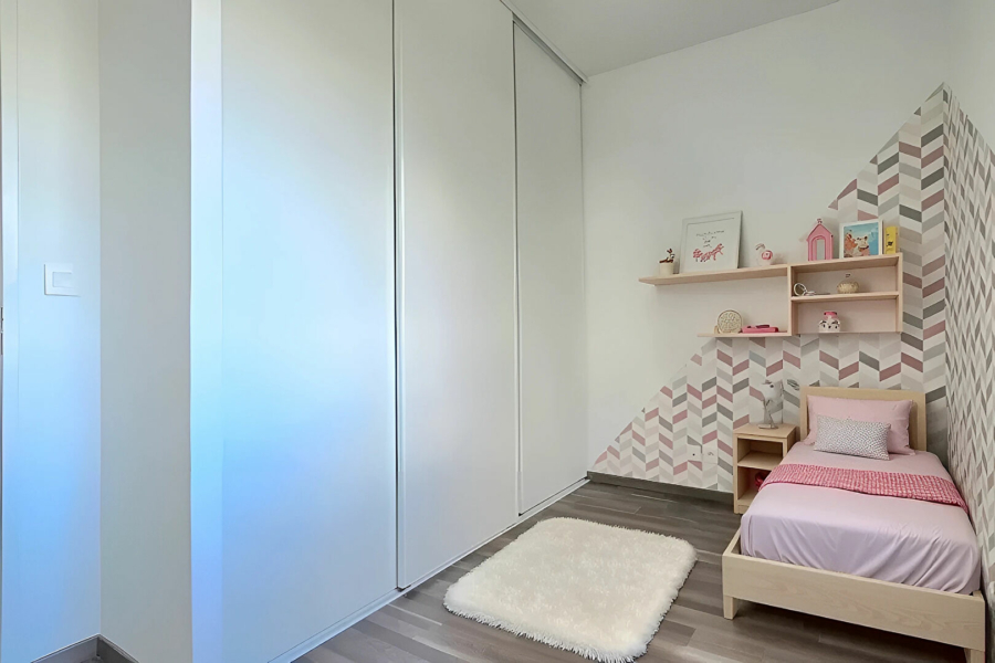 Ce bien se compose d’une entrée avec placard, donnant sur une pièce de vie lumineuse et bien exposée, avec cuisine ouverte. Un large couloir dessert trois chambres, chacune équipée de rangements intégrés, une salle d’eau ainsi que des toilettes indépendantes.