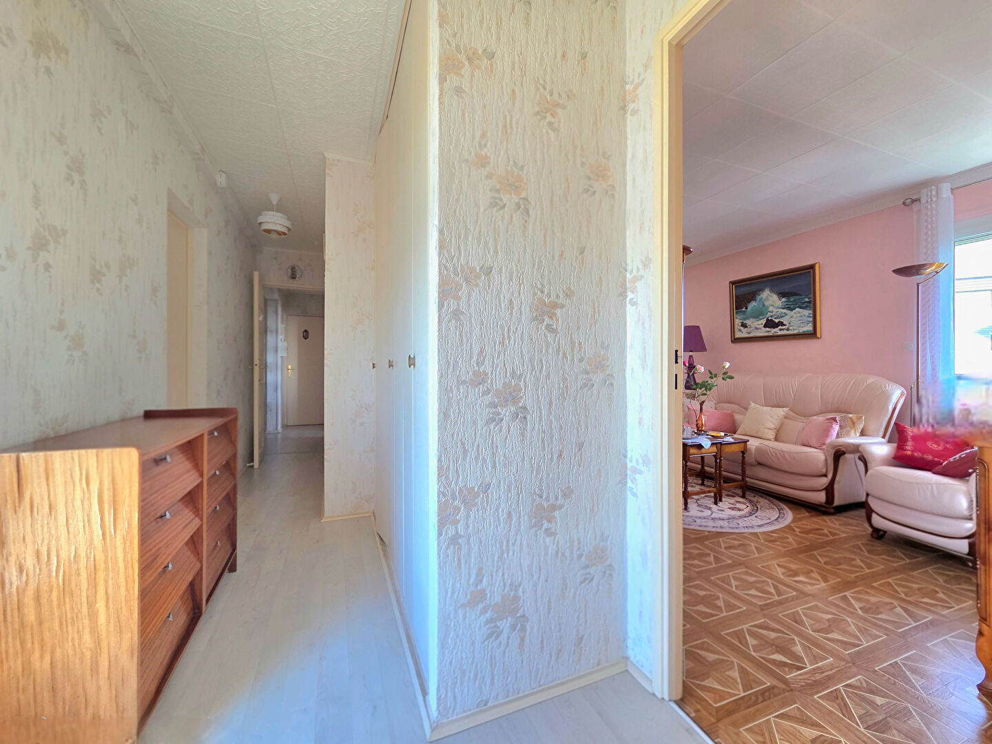 L’appartement se compose d’une entrée avec placard desservant une pièce de vie, d’une cuisine indépendante aménagée/équipée (possibilité d’ouvrir la cloison entre les deux pièces), d’une véranda, d’un cellier (possible d’y installer une machine à laver + sèche-linge), un WC indépendant, d’un couloir avec placard (avec étagère et une penderie), de deux chambres, une salle d’eau et un balcon exposé sud-ouest.