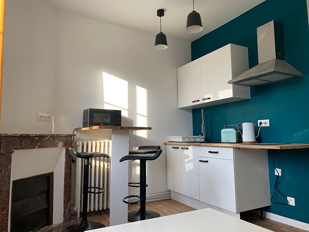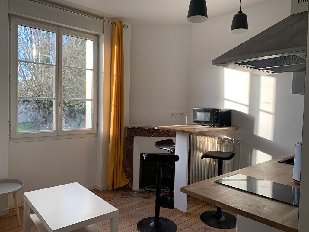 Au premier étage d’un petit immeuble, très joli studio de 16.87 m² entièrement rénové avec de belles prestations comprenant une pièce de vie avec cuisine ouverte aménagée et équipée, une salle d’eau avec WC et un lit simple pouvant se transformer en lit double. Télévision fournie dans l’appartement.