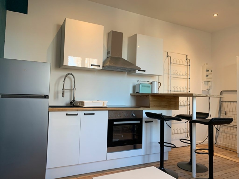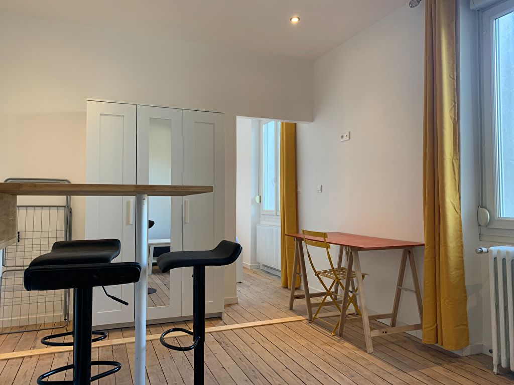Au premier étage d’un petit immeuble, découvrez ce très joli T2 entièrement rénové. Il comprend une pièce de vie avec cuisine ouverte aménagée et équipée, une salle d’eau avec WC et une chambre séparée avec lit double. Une télévision est fournie pour plus de confort.
