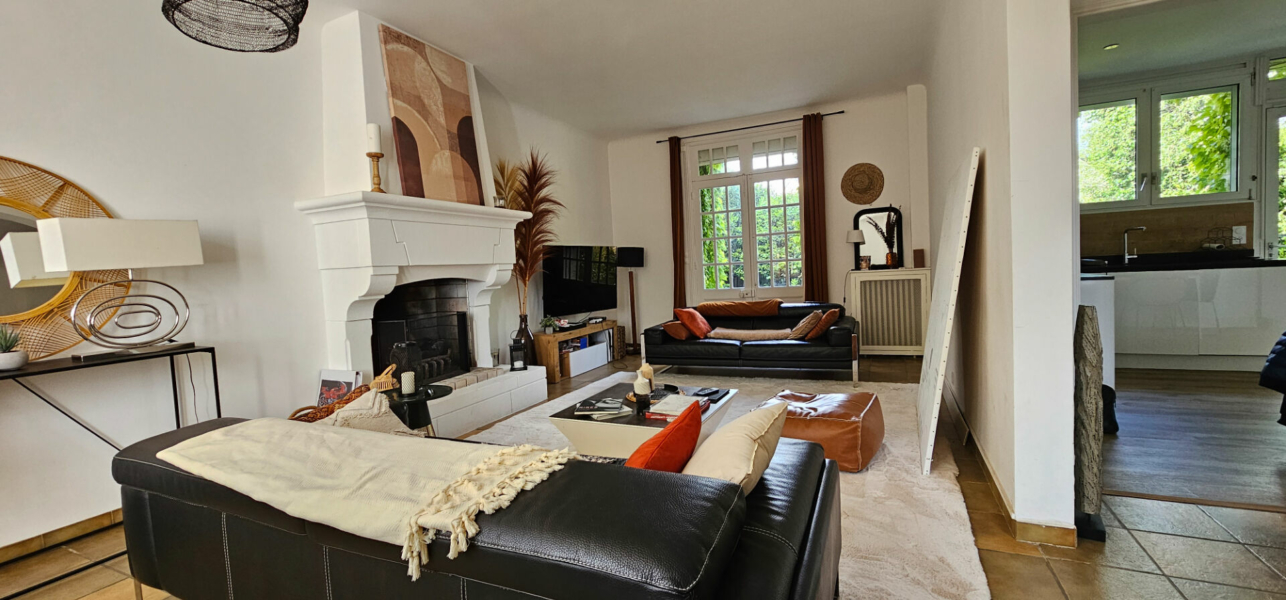Elle se compose, d’une entrée desservant un ensemble de pièces à vivre, composé d’un double salon traversant avec cheminée, d’une salle à manger, ainsi que d’une grande cuisine aménagée/équipée ouverte sur le jardin. Vous retrouvez également une grande suite parentale avec salle d’eau privative en rez-de-chaussée.