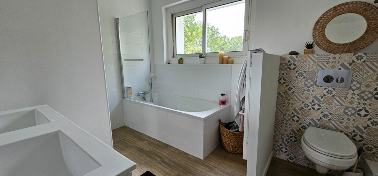 Au 1er étage, un beau palier sur parquet ancien vous permet d’accéder à trois belles chambres ainsi qu’une salle de bains.