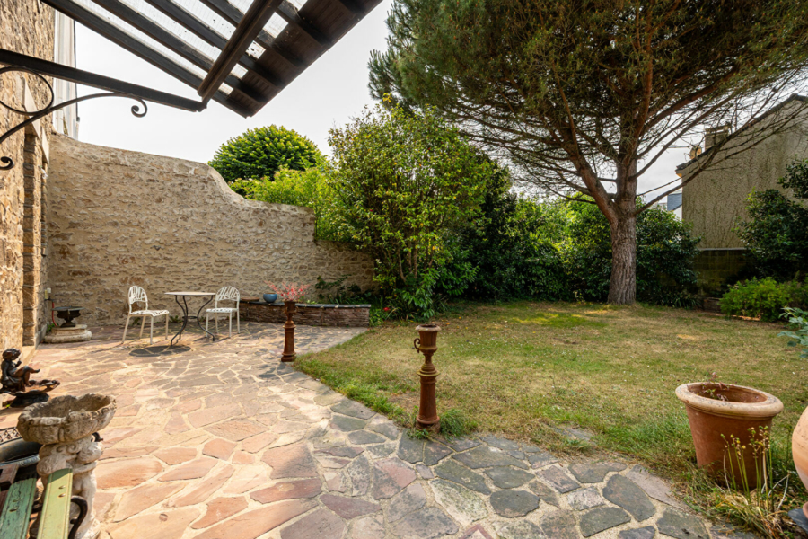 Un beau jardin arboré, clos de murs de pierres et bien exposé complète ce bien rare sur le marché, proche du centre-ville.