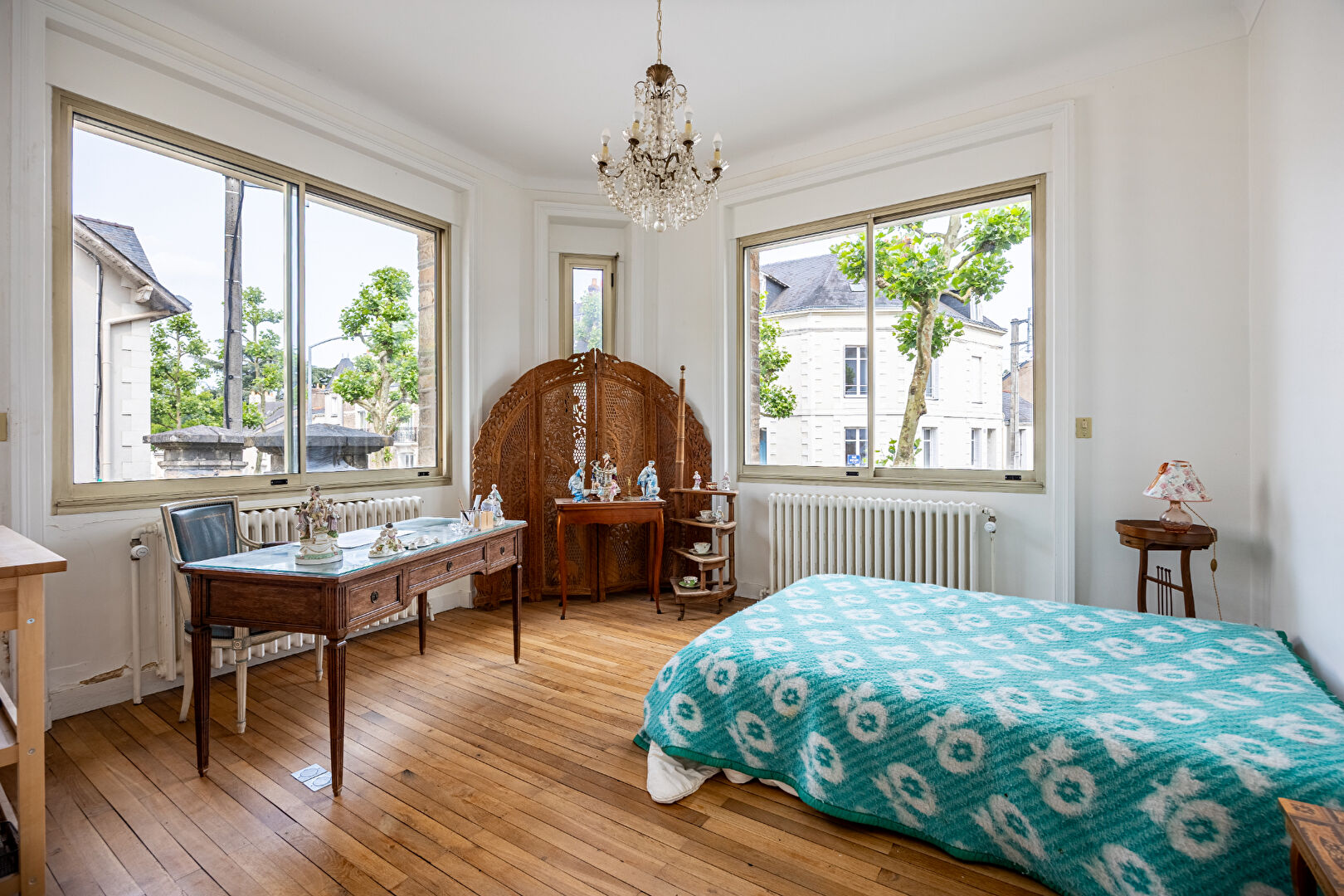 Le premier palier distribue quatre chambres aux volumes généreux, une salle de bains, une salle d’eau et un wc.