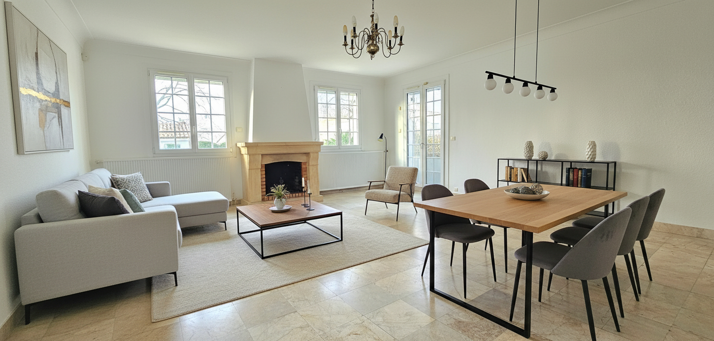 Située à Saint-Herblain Bourg, dans une rue résidentielle calme, maison indépendante de plain-pied construite en 1970, édifiée sur une parcelle de 586 m², offrant une surface de 108 m² et un fort potentiel d’évolution.