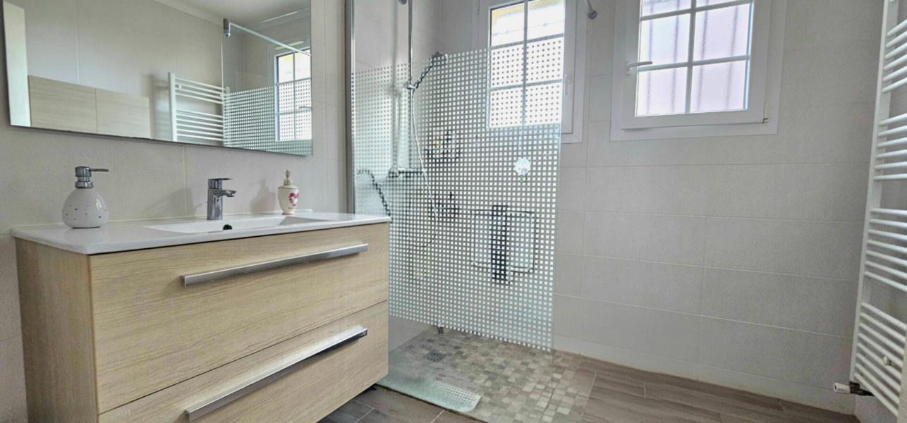 La maison se compose d’une vaste entrée, d’une cuisine indépendante aménagée et équipée, d’une belle pièce de vie bénéficiant d’une double exposition sud et ouest, ouverte sur le jardin, de trois chambres, d’une salle d’eau ainsi que d’un WC indépendant.