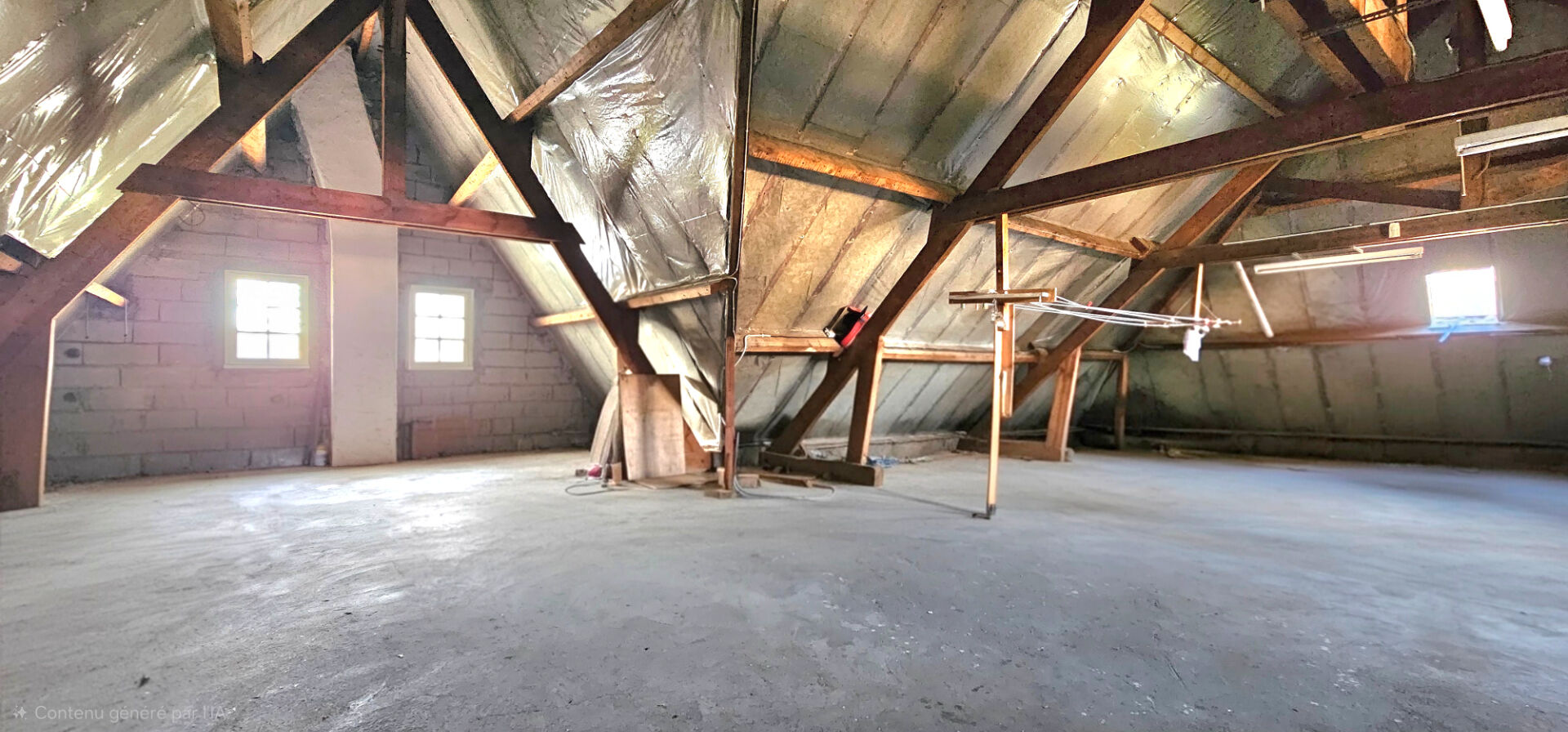 Les combles, sur dalle béton, représentent plus de 110 m² de surface aménageable, permettant de nombreux projets d’agrandissement selon les besoins.
