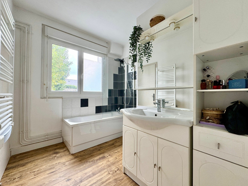 Art et Pierre vous propose en exclusivité cette maison lumineuse non mitoyenne de plain pied offrant des volumes agréables. Elle distribue un beau séjour sur parquet, une cuisine aménagée et équipée, deux chambres, salle de bain avec wc, une buanderie, un garage à vélos