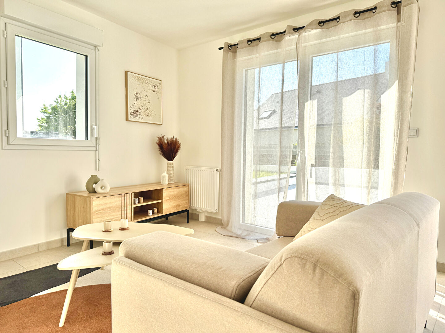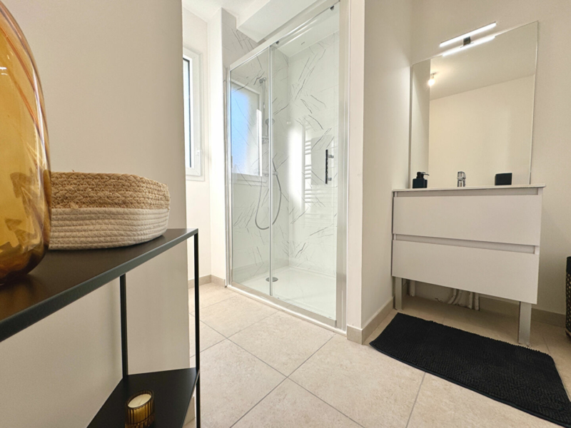 Il dispose d’une entrée, d’une pièce de vie avec cuisine s’ouvrant sue une immense terrasse côté jardin, 2 chambres, une belle salle d’eau avec fenêtre, et toilettes séparées.